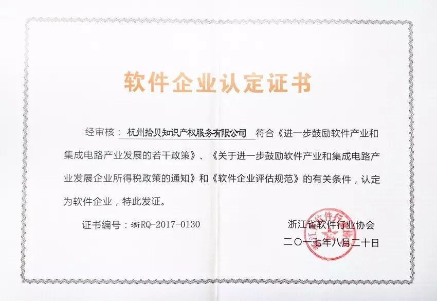 8月,拾贝荣获2017年度浙江省高成长科技型中小企业称号 ,紧接着,拾贝又获得了浙江省软件行业协会的认定,成为了浙江省软件企业。