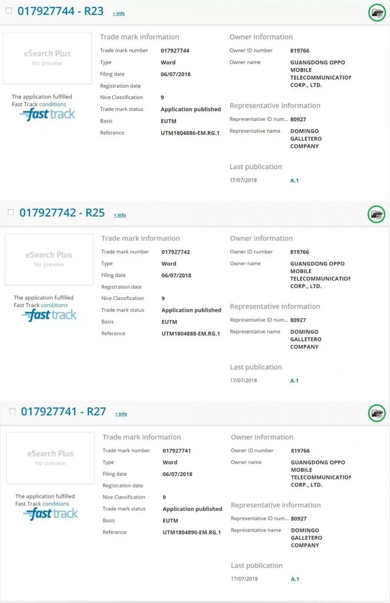 由于华为率先抢占了R15的商标,OPPO只注册了OPPO R15和R15 Pro两个和R15有关的商标。