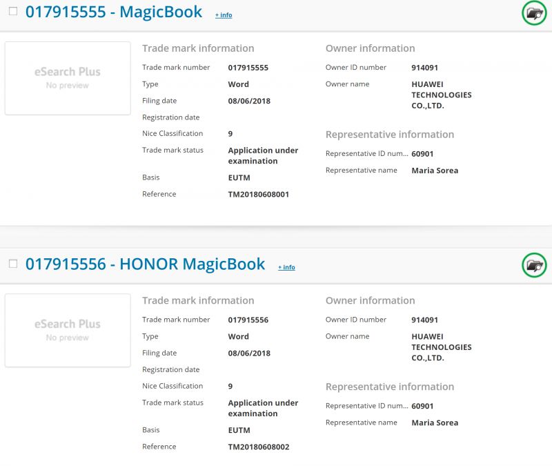 同样,OPPO没有推出笔记本电脑产品,却申请了Magic book商标,也可能是出于此原因。其实,华为早就申请过商标,不过其申请的是MagicBook(B为大写,Magic和Book中间无空格)以及HONOR MagicBook(带荣耀品牌)这两个版本,而这一写法与荣耀官网符合。
