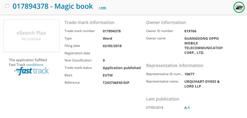 但有好奇的网友发现,OPPO注册了Magic book商标。说到Magic book,就难免让人想到荣耀同名的笔记本电脑。
